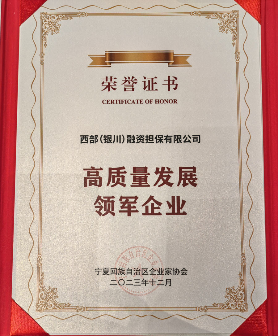 西部(銀川)融資擔保有限公司是經(jīng)銀川市委、政府批準并出資設(shè)立的以擔保為主業(yè)的專業(yè)金融服務(wù)機構(gòu),于2014年7月正式掛牌成立,注冊資本45.87億元,是AA+級擔保機構(gòu),為中國銀行間市場交易商協(xié)會會員單位,中國融資擔保業(yè)協(xié)會副會長單位,累計七次蟬聯(lián)國內(nèi)金融領(lǐng)域最權(quán)威的《金融時報》“金龍獎,累計四年榮獲“自治區(qū)金融服務(wù)創(chuàng)新獎,憑借創(chuàng)新優(yōu)勢、規(guī)模優(yōu)勢、品牌優(yōu)勢躋身國內(nèi)擔保行業(yè)前列,成為國內(nèi)具有核心競爭力和品牌影響力的擔保機構(gòu)。